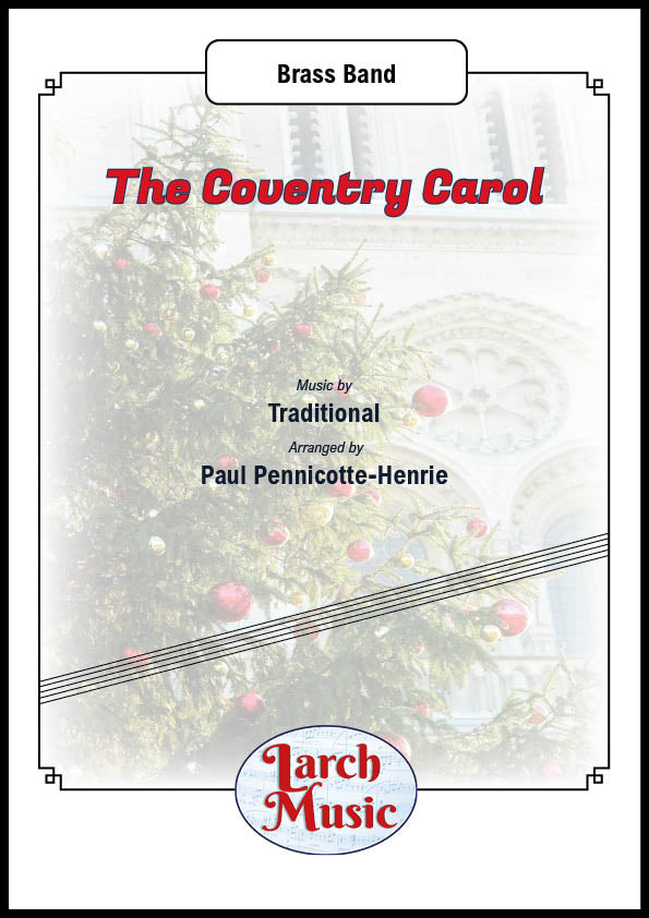 COMPOSER: TraditionalARRANGER: Paul Pennicotte-HenrieA beautiful arrangement of this Christmas Classic.The "Coventry Carol" is an EnglishChristmas caroldating from the 16th century. The carol was traditionally performed inCoventryinEnglandas part of amystery playcalledThe Pageant of the Shearmen and Tailors. The play depicts theChristmasstory fromchapter twoin theGospel of Matthew: the carol itself refers to theMassacre of the Innocents, in whichHerodordered all male infants under the age of two inBethlehemto be killed, and takes the form of alullabysung by mothers of the doomed children.Available now from Larch Music - Leading brass band music publishersLM495ISMN : 9790570004959