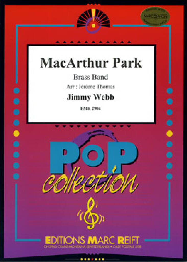 Over a period of four decades Jimmy Webb (b. 1946) has written hits for a number of singers including Glen Campbell, Art Garfunkel, Frank Sinatra, Willie Nelson, Johnny Cash and Linda Ronstadt. His songs are often epic in character and include By the Time I Get to Phoenix; Up, Up and Away; Didn't We; Wichita Lineman and Galveston. MacArthur Park (1968) was unlike anything that had gone before it. Running at over 7 minutes, it is 2 or 3 times the length of most pop songs and has an extended orchestral interlude. Richard Harris' seminal recording topped the music charts in Europe, while peaking at number two on the U.S. charts. Philip Sparke has made this excellentarrangement for brass band, which is sure to become a regular feature on your concert programme.
